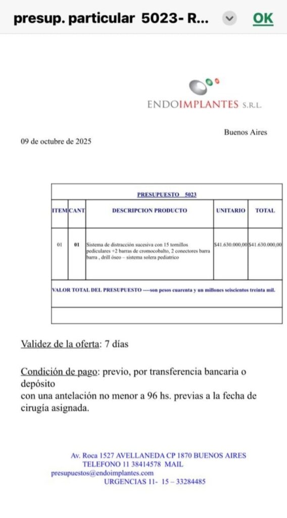 Es una carrera contra el tiempo ya que su estado avanza de forma apresurada y el monto que se debe cubrir es, a la fecha, de 42.000.000$.